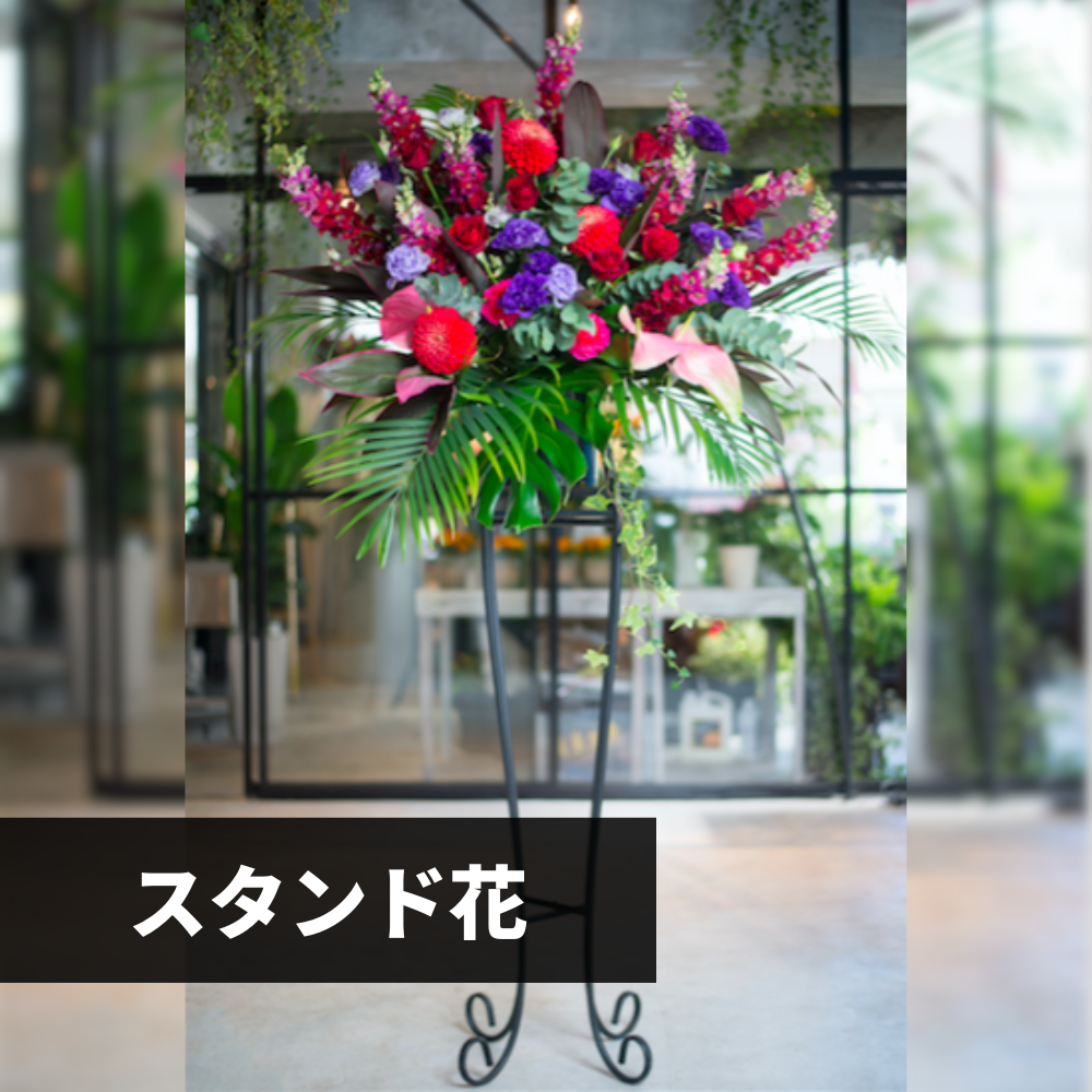 華やかなスタンド花が、開店や開業などの晴れやかな場面をより一層特別なものに