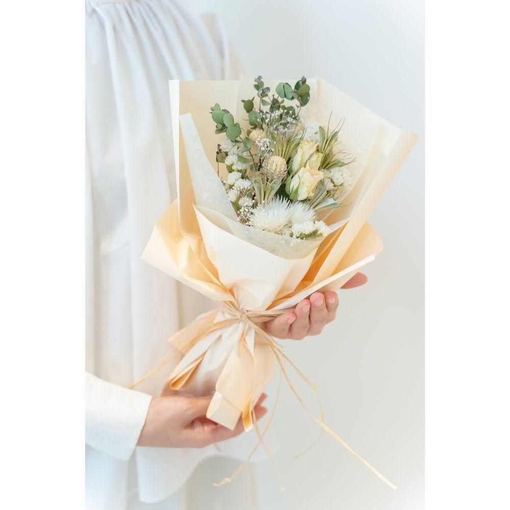 ナチュラル感を感じられる自然な色合いのブーケでシーンを問わず贈り物におすすめです。